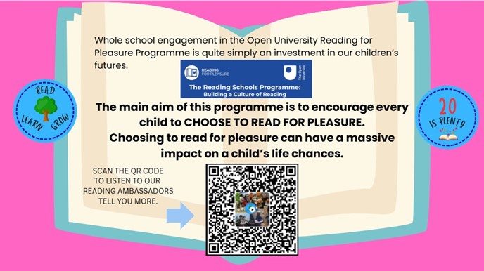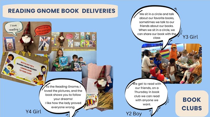We provide our children a wide range of opportunities for them to enjoy reading, chat informally about books that they enjoy and make recommendations to others. Teaching staff and support staff undertake ongoing professional development which ensures they are knowledgeable about contemporary children's literature. This allows them to engage with children in book talk and with personal book recommendations.